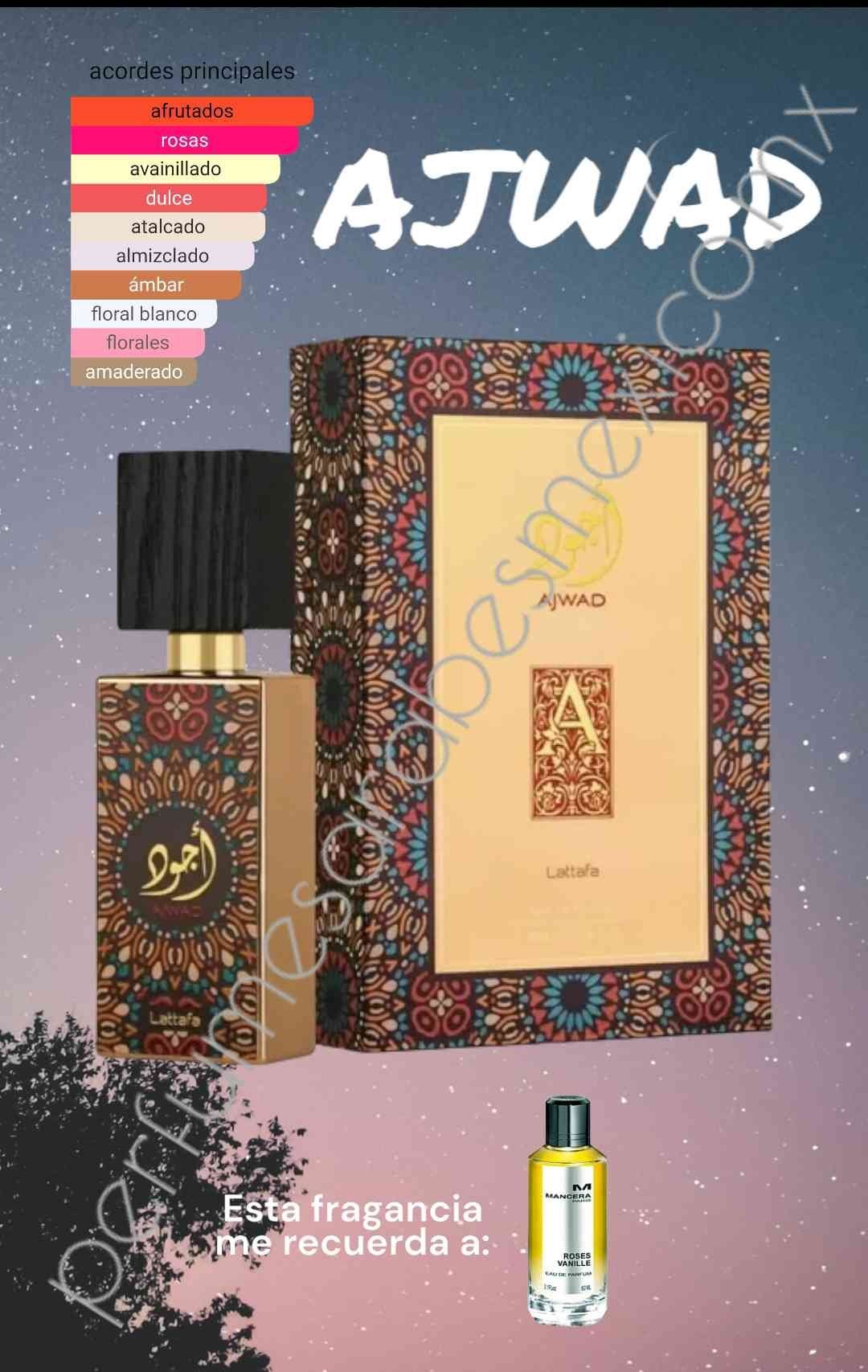 El Eau de Parfum Lattafa Ajwad, en un frasco de 3,4 oz, es una fragancia cautivadora y audaz diseñada tanto para hombres como para mujeres. Se abre con una mezcla rica y cálida de especias orientales y notas aromáticas, creando una introducción atractiva y misteriosa. El corazón revela una fusión armoniosa de elementos florales y amaderados, que agregan profundidad y complejidad al aroma. La fragancia se asienta en una base cálida y duradera, con ámbar, almizcle y sándalo, lo que la convierte en una opción ideal para las personas que aprecian una fragancia encantadora y unisex adecuada para varias ocasiones. El EDP Lattafa Ajwad deja una impresión memorable y cautivadora con su cautivadora mezcla de notas orientales y amaderadas, lo que lo convierte en una opción distintiva y versátil para los entusiastas de los perfumes modernos.