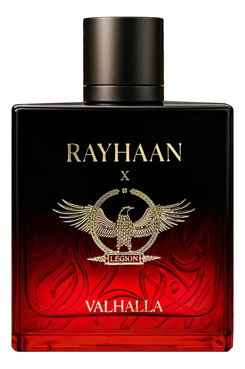 Valhalla de Rayhaan es una fragancia de la familia olfativa Aromática Frutal para Hombres. Esta fragrancia es nueva. Valhalla se lanzó en 2025. Las Notas de Salida son frambuesa, coñac y Licor; las Notas de Corazón son rosa de Bulgaria (rosa Damascena de Bulgaria), haba tonka y musgo de roble; las Notas de Fondo son roble, sándalo y praliné.